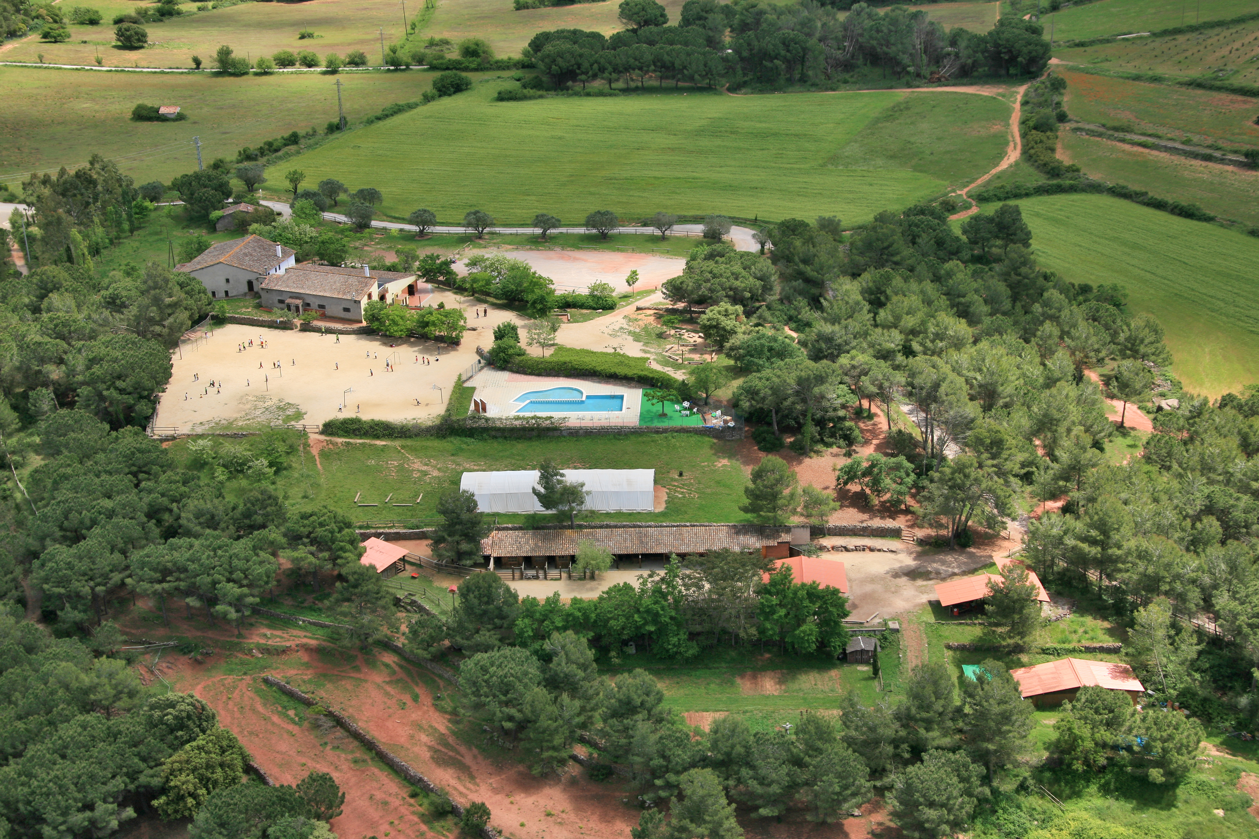 Envoltada de més de 5 hectàrees de camps, bosc, piscina i camp d'esports... Tot un espai on gaudir de la natura, l'esport i els animals!