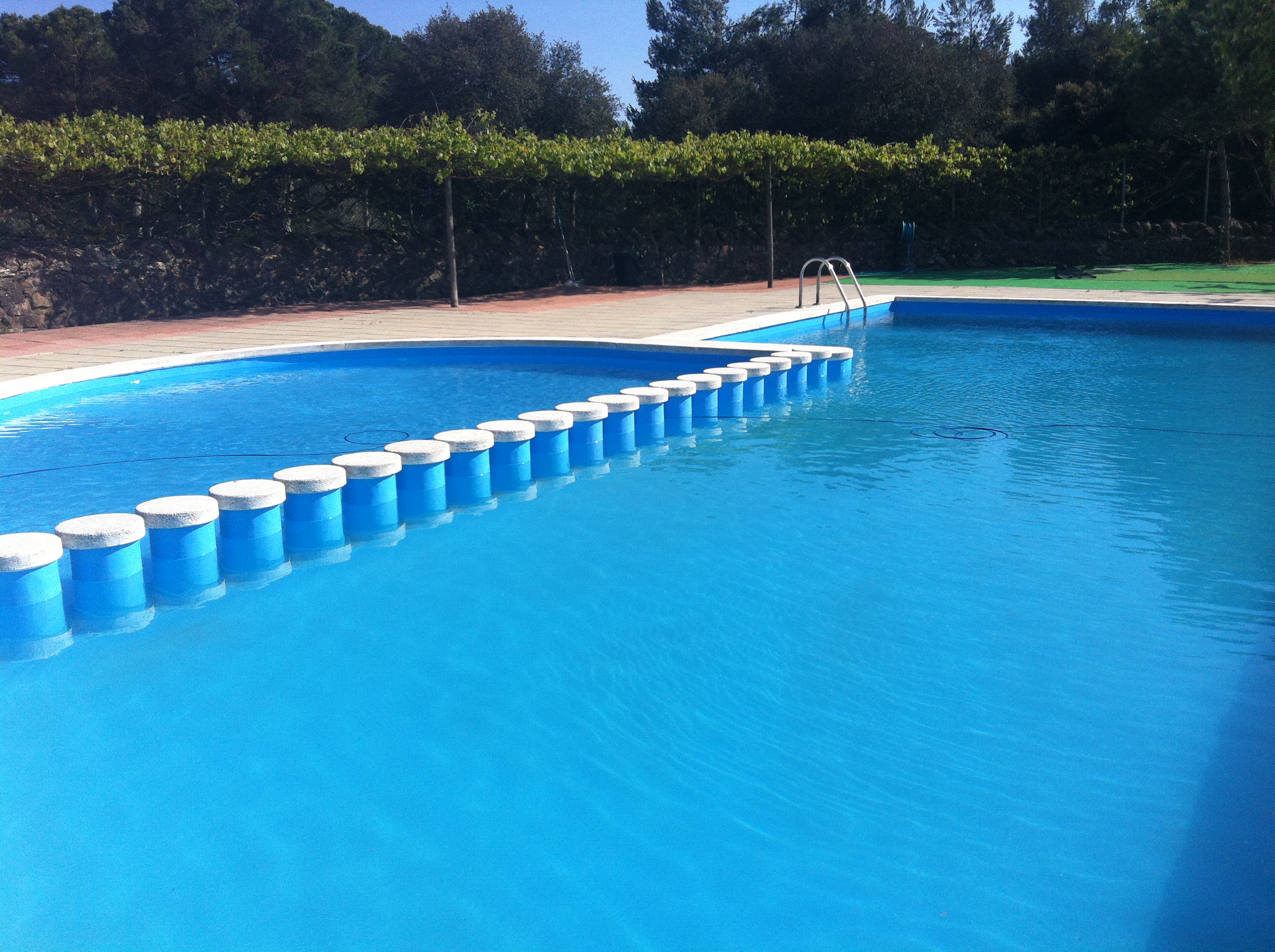 Piscina, de 120 m2, dividida en dues zones: Una de 60 cm. de profunditat i l'altra d'una profunditat màxima de 140 cm. Tot el recinte queda aïllat per una tanca de 2 metres.