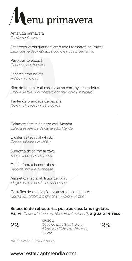 Preu mig carta: 22 Preu menú diari: 13