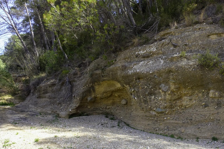 Son rieras normalmente secas, pero que en régimen de lluvias fuertes pueden bajar mucha agua. Nótese en la erosión que hace el agua en el giro de la riera hacia Abrera cuando choca contra el margen formado por sedimentos aluviales cuaternarios. (foto)  Riera de Masquefa arriba, en un gran meandro se hace una cueva donde antiguamente se guardaba un rebaño.